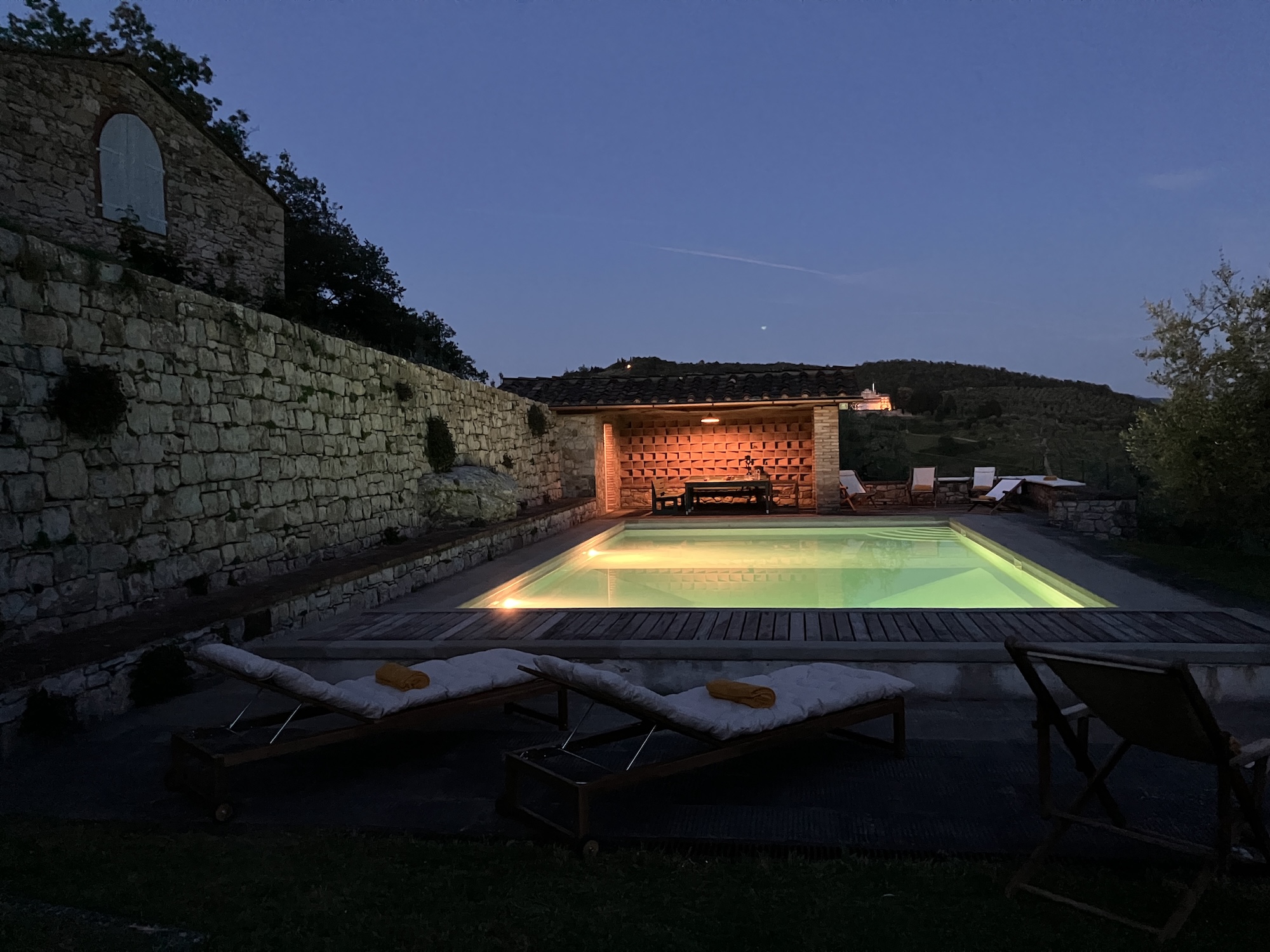During the evening, the area around Casale is illuminated. You can enjoy late night dinners, drinks, and a night swim