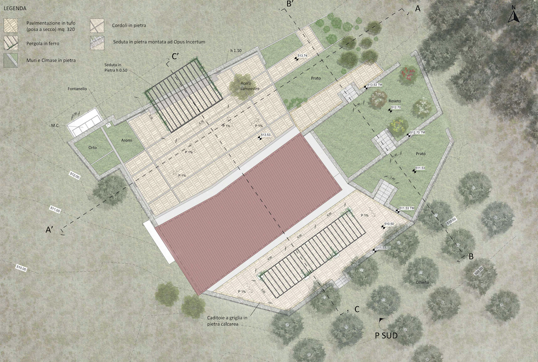 The terraces are paved with Sicilian tufo, and have pergolas for shades.