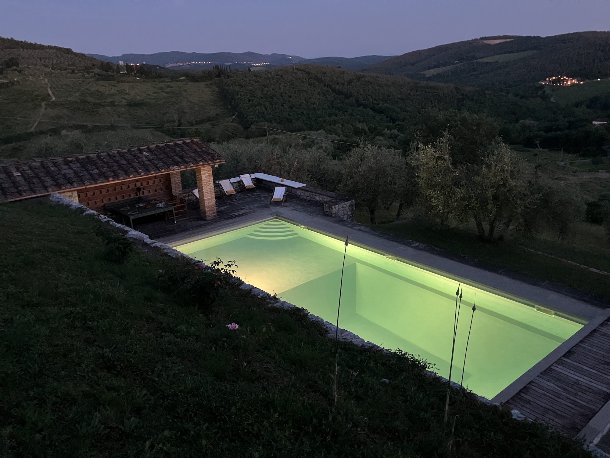 During the evening, the area around Casale is illuminated. You can enjoy late night dinners, drinks, and a night swim
